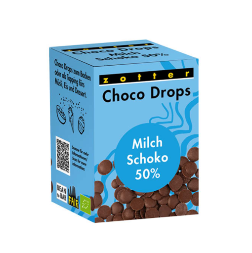 These small milk chocolate drops provide a rich chocolate flavor with 50% cocoa content. They incorporate pure mountain milk from Tyrolean organic mountain farmers, raw cane sugar, cocoa butter, and vanilla for a smooth melt-in-the-mouth texture. Made bean-to-bar at the Zotter Chocolate Factory from select cocoa beans.